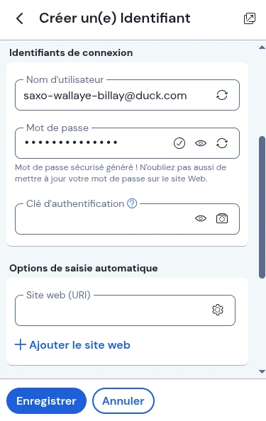 Et voilà, désormais Bitwarden pourra vous générer automatiquement des adresses jetables lors de l’ajout d’un nouvel identifiant sur un site web.