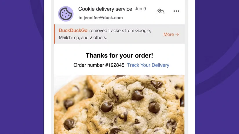 Exemple de trackers supprimés avant le transfert du mail sur votre adresse principale